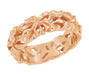 Rose Gold Calla Lilies Filigree Wedding Band - Mid Century Modern Floral Wide Wedding Ring