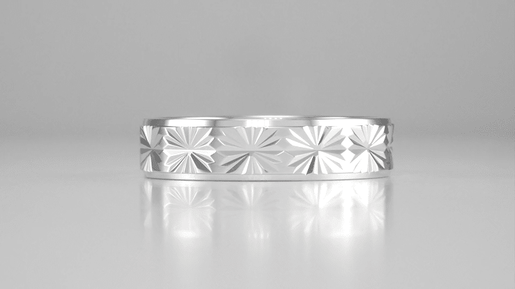 1960's Mid Century Carved Starbursts Low Profile Platinum Wedding Band - 5mm Wide