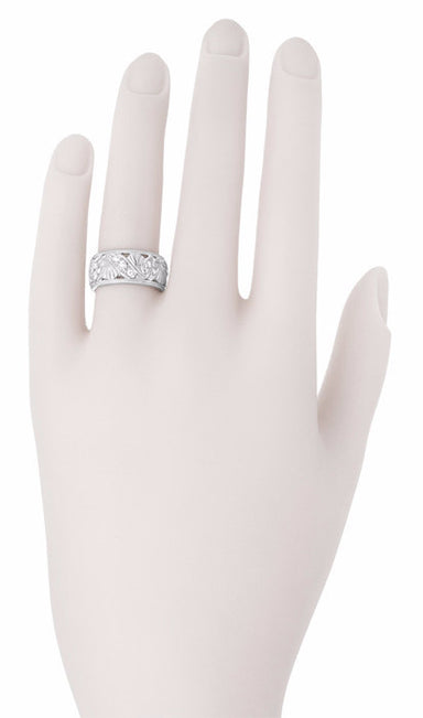 Retro Moderne Vintage Leaves Filigree Diamond Wedding Band in White Gold - 14K or 18K
