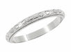 This delicate Art Deco very thin wedding band in 14K white gold is decorated all the way around the band on all three outward facing sides with an ...