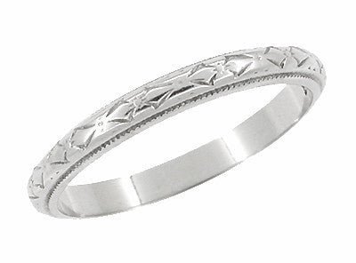 This slender 2mm wide Art Deco white gold vintage style wedding band features an eternity engraved wheat pattern artisan hand engraved all the way ...