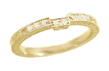 Art Deco Blue Sapphire Engraved Engagement Ring with Side Diamonds in Yellow Gold - Fishtail Setting