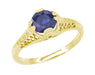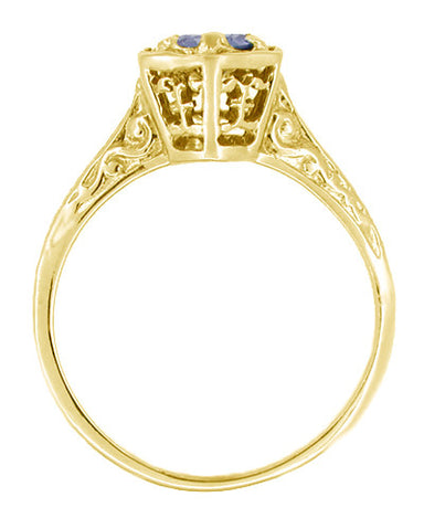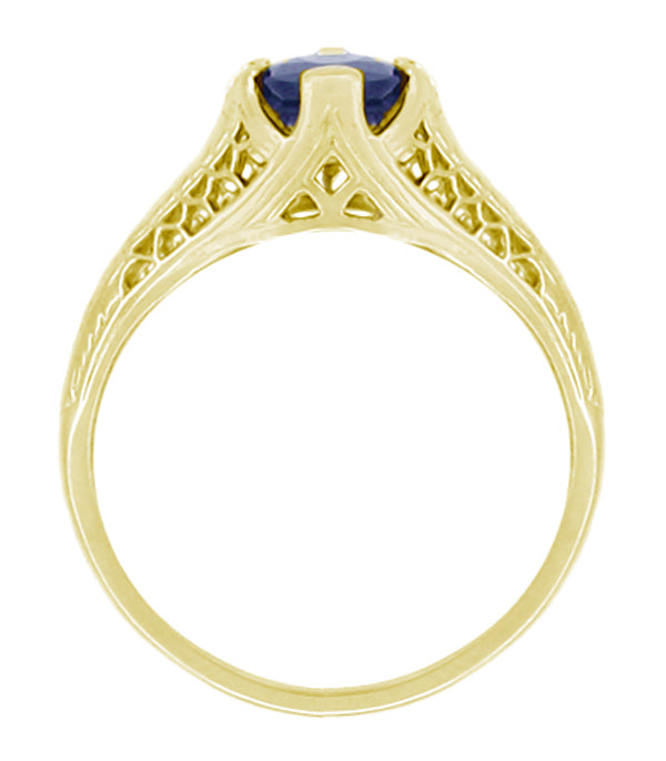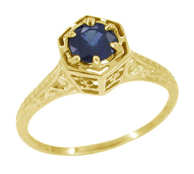 Art Deco Honeycomb Filigree Blue Sapphire Engagement Ring in 14K Yellow Gold