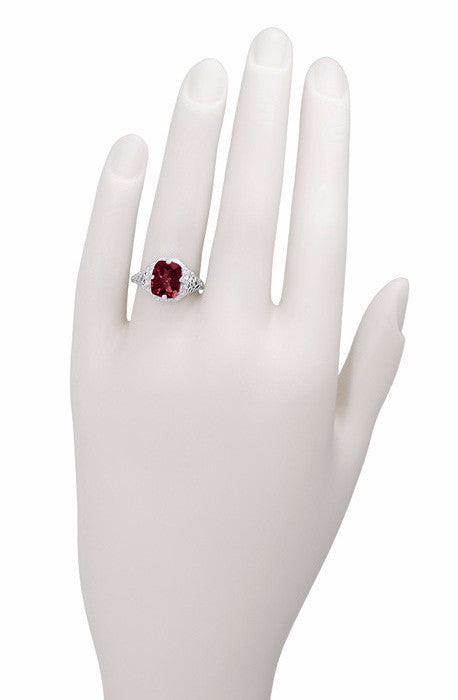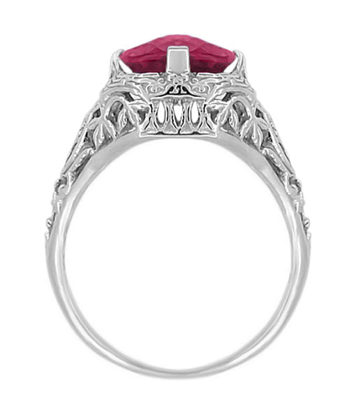 Art Deco Flowers and Leaves Rhodolite Garnet Filigree Ring in 14 Karat White Gold