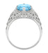 Filigree Art Deco Leaves and Flowers Emerald Cut Swiss Blue Topaz Ring in 14 Karat White Gold