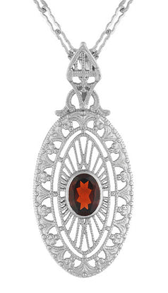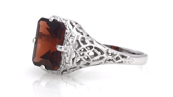 This beautiful ring is crafted in delicate 14K white gold pierced filigree and hand finished in intricate detail with flowers and leaves. The ideal statement ring for a garnet lover, the timeless style of this exquisite must-have classic ring is sure to be noticed!
