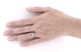 Measurements are 6.3 millimeters wide at the top of the ring, tapering down to 1.8 millimeters wide at the bottom of the band, and rising 3.7 millimeters off the finger.