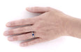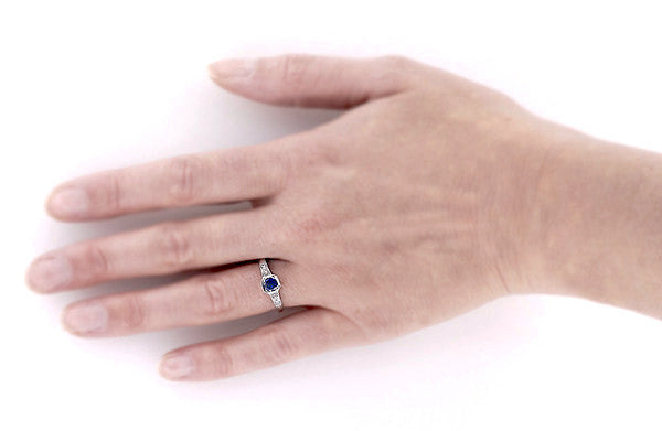 Crafted to order in your choice of 14K or 18K white gold, the classic design of this low profile blue sapphire ring makes it an excellent choice for anyone who would like an heirloom quality ring with antique style details, which will not "catch" on things and get in the way of a busy daily routine.