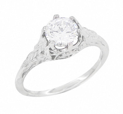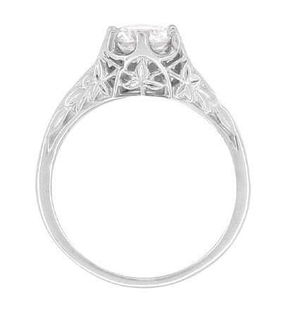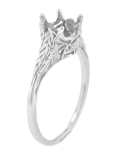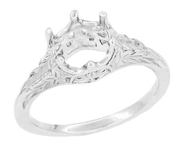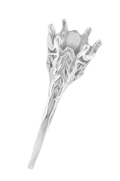Art Deco Crown of Leaves Filigree 3/4 Carat Round Stone Engagement Ring Solitaire Setting in 14K or 18K White Gold
