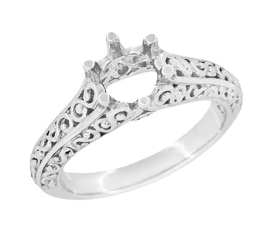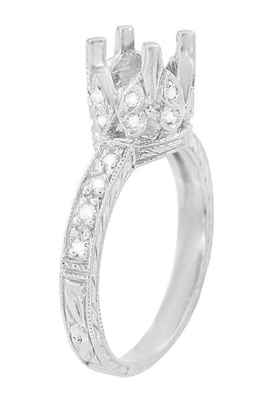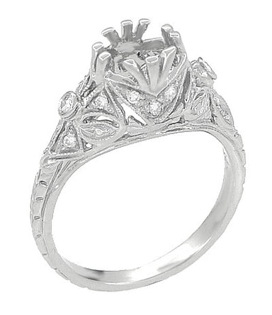 Art Deco Platinum Crown of Leaves Filigree Solitaire Engagement Ring Setting for a 3/4 Carat Round Stone