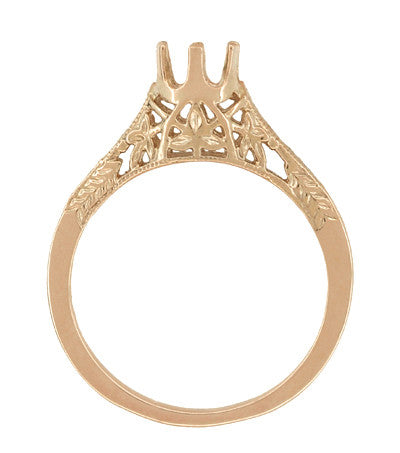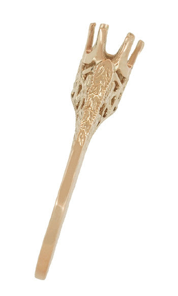 1/4 - 1/3 Carat 14 Karat Rose Gold Crown of Leaves Filigree Art Deco Engagement Ring Setting