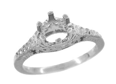 Art Deco 3/4 - 1 Carat Crown of Leaves Filigree Solitaire Engagement Ring Mounting in 14 or 18 Karat White Gold