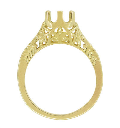 Art Deco Yellow Gold 3/4 - 1 Carat Crown of Leaves Filigree Engagement Ring Setting