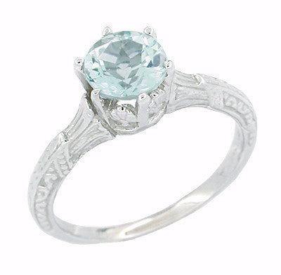 Filigree Art Deco Aquamarine Solitaire Ring in 14 Karat White Gold