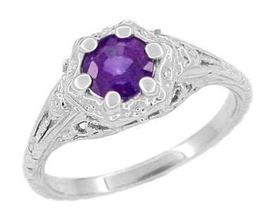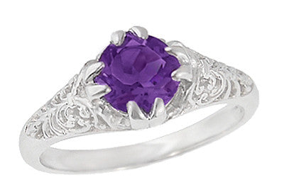 Edwardian 1 Carat Amethyst Filigree Engagement Ring in White Gold