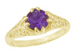 1 Carat Amethyst Filigree Edwardian Engagement Ring in Yellow Gold