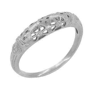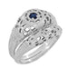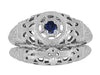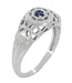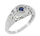 Art Deco Filigree Sapphire Ring in Platinum - Low Dome 1920's Antique Design