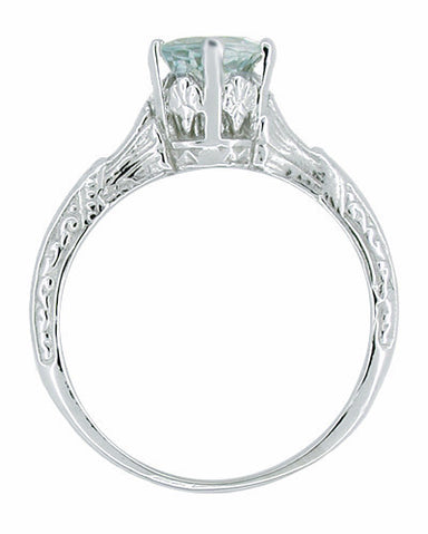 Art Deco Aquamarine Duo Filigree Ring in 14 Karat White Gold