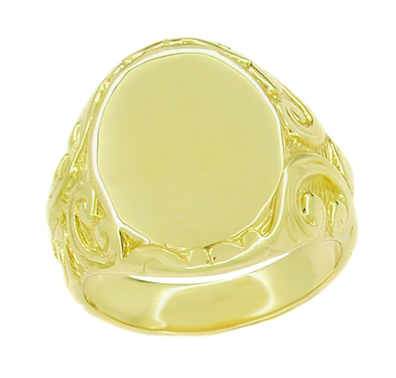 Carved Antique Scrolls Victorian Oval Signet Ring in Yellow Gold