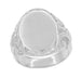 The sides of the ring feature a beautiful artistic Victorian scroll carved design as the perfect frame for the center flat oval on top - perfect for engraving your personalized initials or family crest!