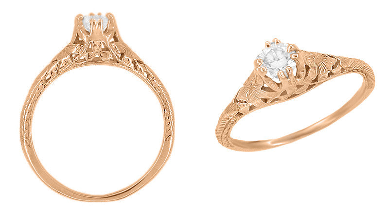 Art Deco Filigree Flowers and Wheat 1/3 Carat Engraved Engagement Ring Setting in 14 Karat Rose Gold