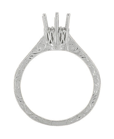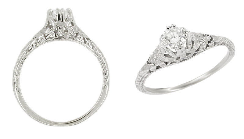 4.5mm Art Deco Filigree Flowers and Wheat 1/3 Carat Vintage Engraved Engagement Ring Setting in 18 or 14 Karat White Gold