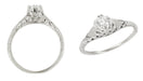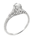 Artisan crafted in your choice of 14K or 18K white gold, this original antique replica Art Deco filigree engagement ring mounting features a four prong setting integrated into the ring design to cradle a 1/3 carat diamond solitaire.