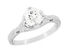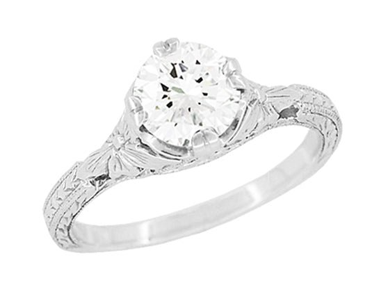 Art Deco Flowers 1/2 Carat Filigree Antique Engagement Ring Setting Design for a 5mm Round Stone in 14K or 18K White Gold