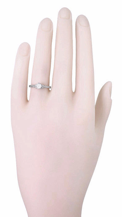 Art Deco Filigree Flowers and Engraved Wheat 1/3 Carat Solitaire Diamond Engagement Ring in White Gold