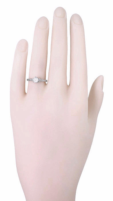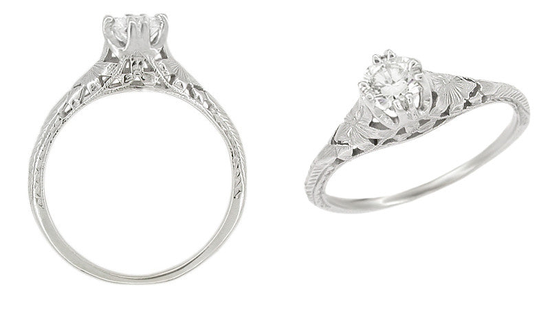 Art Deco Filigree Flowers and Wheat Engraved 1/2 Carat Diamond Engagement Ring in 18 Karat White Gold