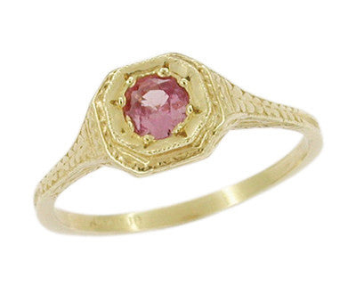 Art Deco Filigree Pink Sapphire Ring in 14 Karat Gold