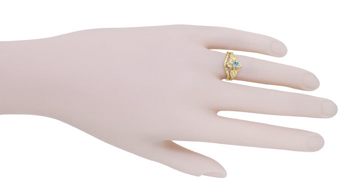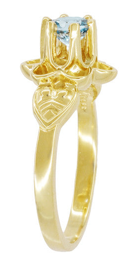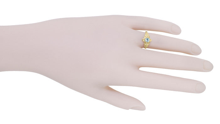 Victorian Flowers Solitaire Aquamarine Birthstone Engagement Ring in Yellow Gold