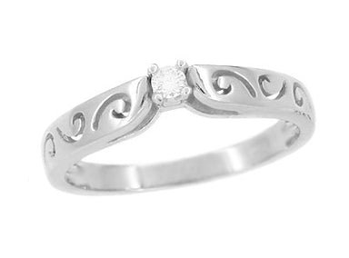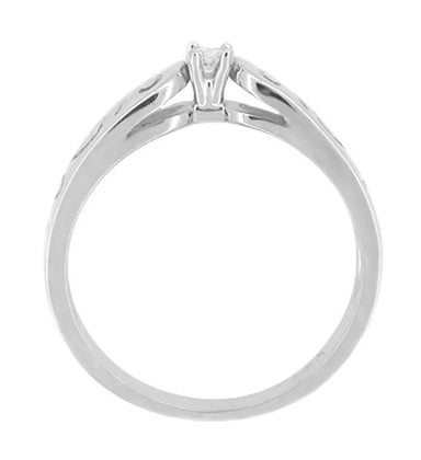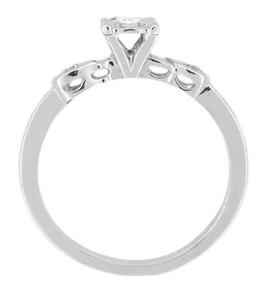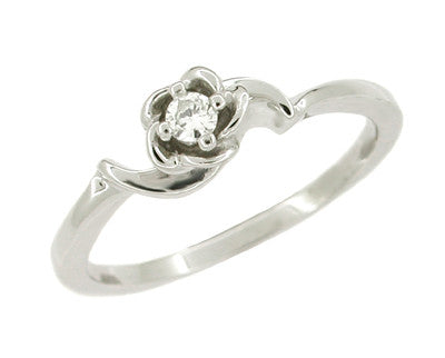 Retro Moderne Rose White Sapphire Promise Ring in White Gold
