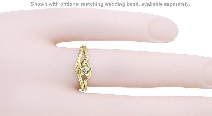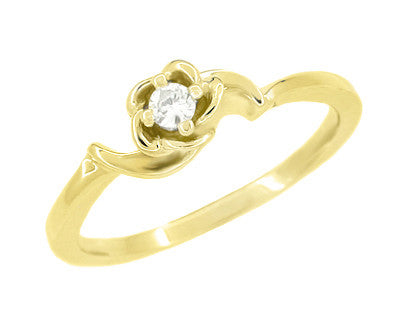 Retro Moderne Yellow Gold Blooming Rose Diamond Promise Ring - 10K or 14K