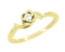Retro Moderne Yellow Gold White Sapphire Rose Bloom Promise Ring - 10K or 14K