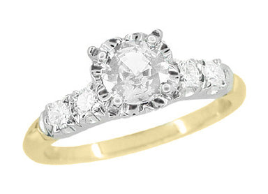 Classic 1950's Retro Moderne 1/4 Carat Diamond Engagement Ring in Yellow Gold - 10K or 14K