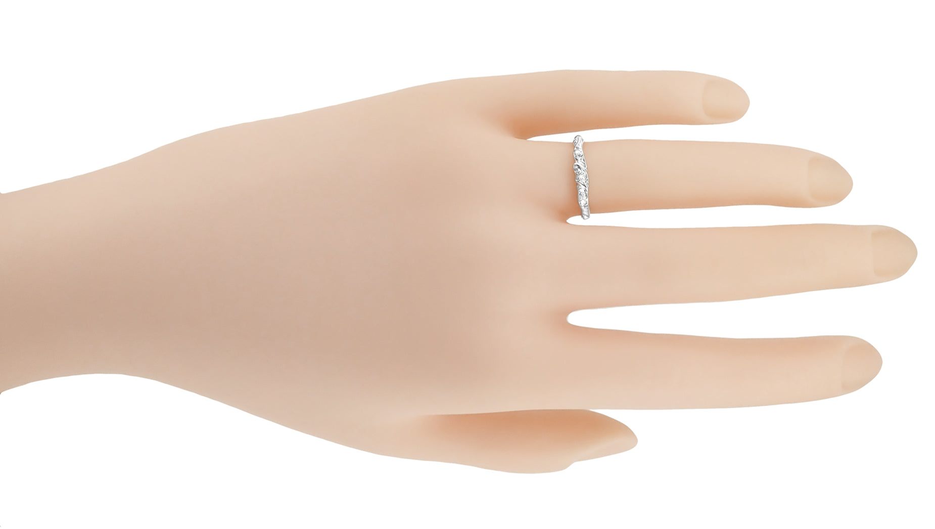 Mid Century Modern Scroll Diamond Wedding Ring in Platinum