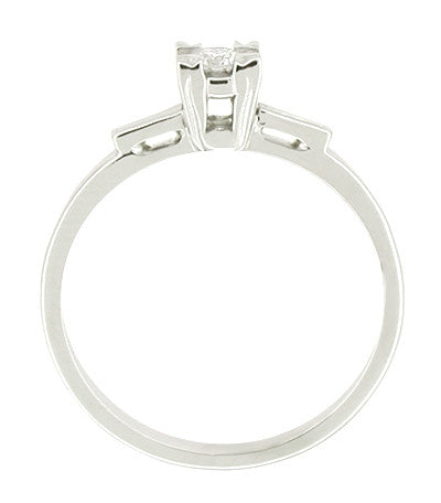 This lovely Retro Moderne diamond promise ring in high polish white gold features a round brilliant cut diamond at its center of 0.10 carat, G colo...