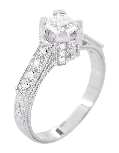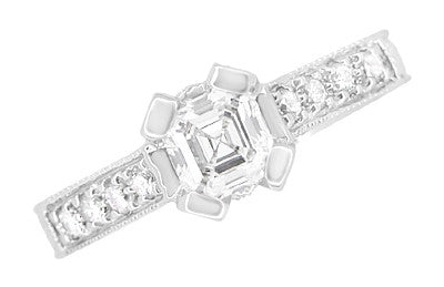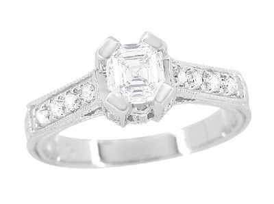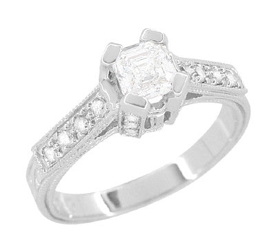 Art Deco 1/2 Carat Asscher Cut Diamond Engagement Ring in 18 Karat White Gold