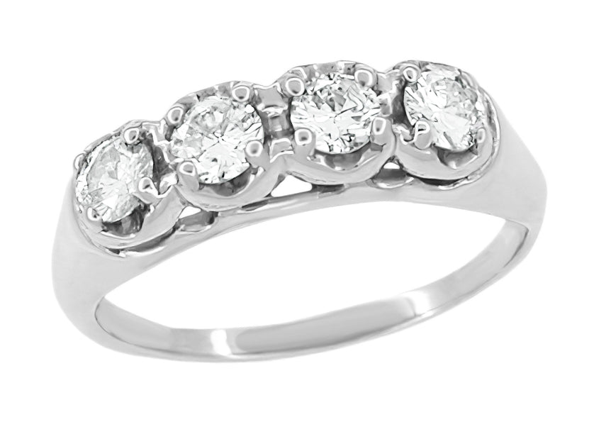 Brenley 1950's Mid Century Antique Style 4 Diamond Wedding Ring in 14 Karat White Gold