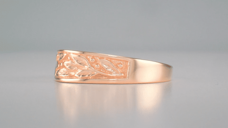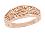 1960's Mid Century Design Men's 14 Karat Rose Gold Carved Olive Leaves Band - 6.8mm