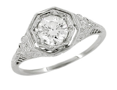 Art Deco Hearts and Flowers Diamond Filigree Platinum Engagement Ring