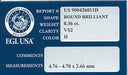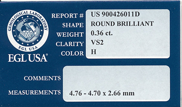 This heirloom ring comes with a diamond report for the center diamond from the European Gemological Laboratory (EGL).