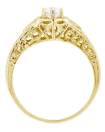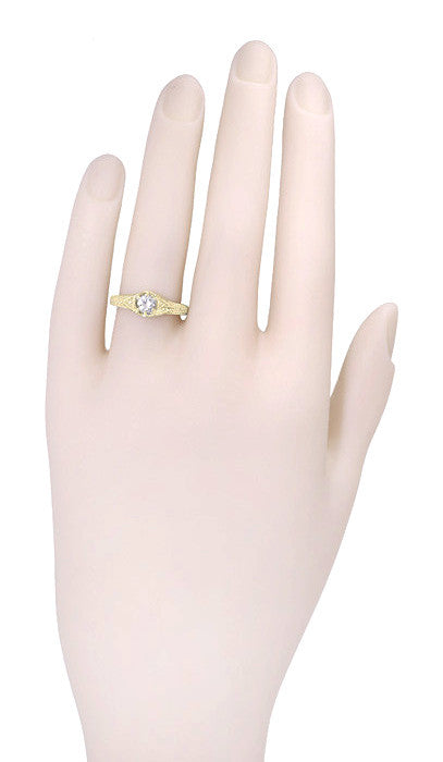 Art Deco Filigree Wheat and Scrolls Diamond Engraved Engagement Ring in 18 Karat Yellow Gold | 1920's Design