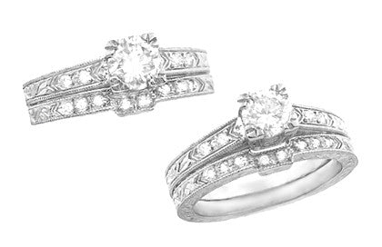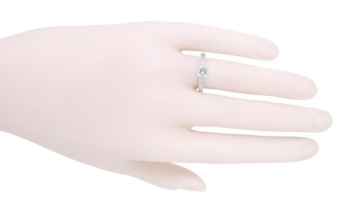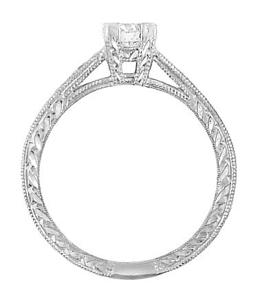 Vintage Engraved Art Deco Diamond Engagement Ring in White Gold