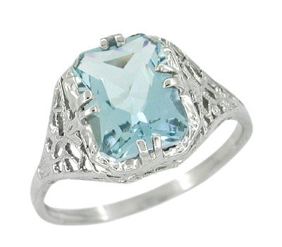 Art Deco Filigree Rectangular 1.30 Carat Aquamarine Engagement Ring in 14 Karat White Gold
