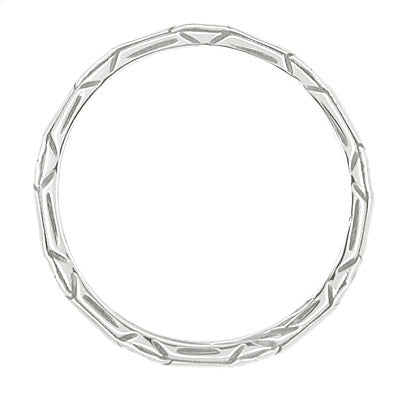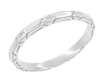 Vintage Inspired Art Deco Floral Geometric Carved Wedding Band in Platinum - SIze 6.5