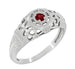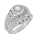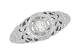 Platinum Art Deco Floral Dome Filigree Diamond Engagement Ring