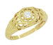 Sure to attract admiration as it graces your hand, this lovely filigree diamond ring features a low profile design with a securely flush set center gemstone, making it an excellent choice for anyone who would like a ring with antique detail, which will not "catch" on things and get in the way of a busy daily routine.