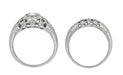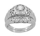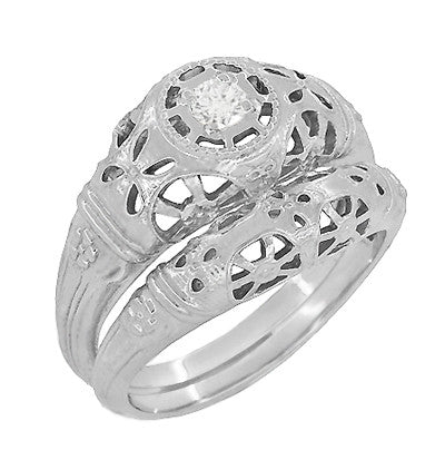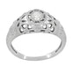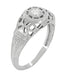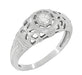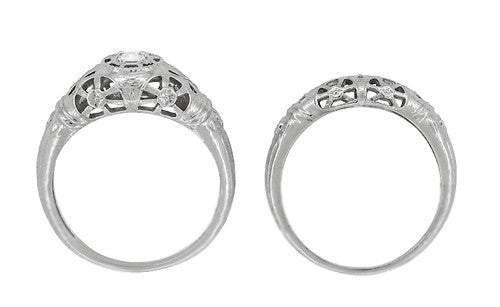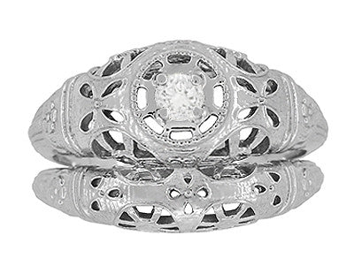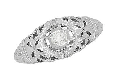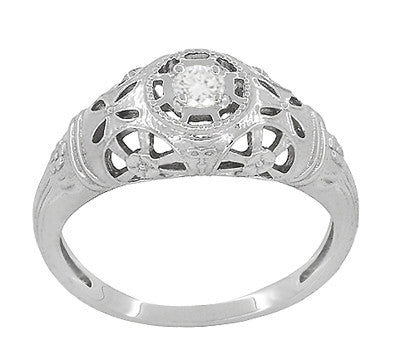 Low Dome Art Deco Filigree White Sapphire Ring in White Gold